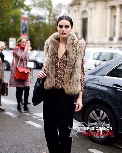 毛茸茸的单品每年都会带起一股潮流旋风,那超温暖的感觉以及被拥着的茸毛触感,是不是超令你心动的呢?这款皮草背心搭配碎花衬衫,下穿长裤,潮范十足。