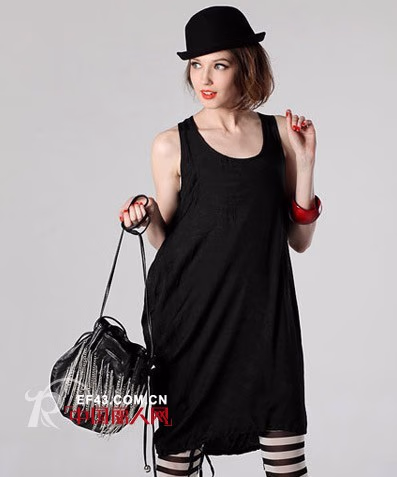 简洁的黑色背心裙搭配黑白条纹legging,简洁经典的黑白搭配,摩登时尚,加上黑色小礼帽以及流苏包包,带出个性帅气魅力。
