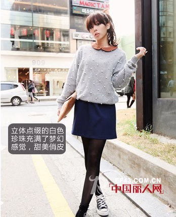 这一季,不单单只有纯色的圆领毛衣最潮,俏皮的拼接也是非常值得一试的。这种类似于升级版的学院款式令你的复古Look更加醒目。其他像帆布鞋,小手包等具有青春趣味的单品也是搭配圆领毛衣所不能错过的。