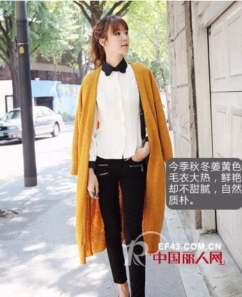 如果你的上身线条没有足够的自信,那么可以选择这种圆领+毛衣的叠穿法遮盖肉肉。选择领型开阔的设计款式,时髦又性感的Look令人印象深刻。另外小脚裤也值得推荐。