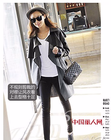 低调显气质的深灰色黑色拼接风衣,流畅的线条非常的轻松而时尚,细腻的面料给人亲肤的感觉,穿起来非常的舒适,非常时尚的设计风格,显露优雅的淑女风。