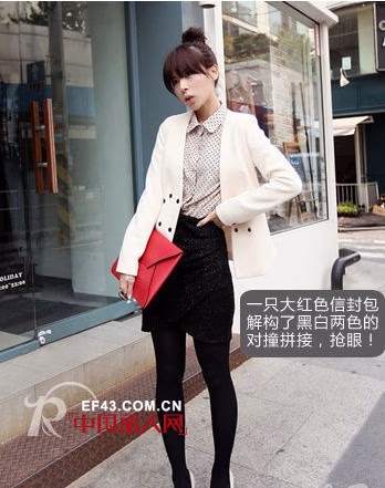 也许你并不认为圆领适合搭西服?但其实在本季,这样的搭配正是可以营造出复古气氛的Look。尤其是在配饰上选择糖果色的单品更是可以令你魅力翻倍的小细节。