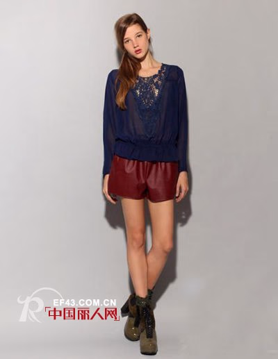 蓝色的镂空衬衫给人很淑女的感觉,透露着一丝丝的小性感,流露着小女人的气息。