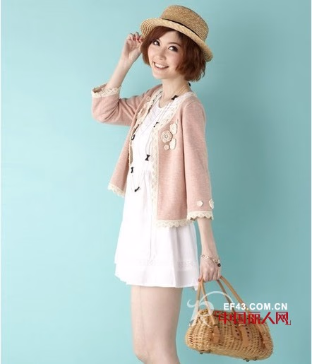 粉色的针织外套,与蕾丝花边完美组合,充满了女性的温柔与甜美,搭配同样有花边的短裙,让你看起来就像一个小公主一样,搭配修身长裤也是不错的哦。