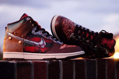 在西方人们享受万圣节的奇幻和恐怖时又对它抱有不可思议的幻想,各种围绕万圣节主题的产品也同时受到大众欢迎,Nike Sportswear最新力作DIVERSITILE NIGHTMARE DUNK (FREDDY KRUEGER)鞋款与T恤的释出,将会让你我感受到浓重的美式恐怖片的风格,血腥画面不只在《猛鬼街》的影片中表现的那么深入人心,设计单位Diversitile为让效果达到极致,在DUNK鞋款中大量利用油画般的手绘工艺,将梦魇FREDDY的残忍及血腥也得以夸张表现,在这血迹斑斑中象征FREDDY的皮手套与钢爪在细节处同样有所修饰,熟悉《猛鬼街》的朋友定会大呼过瘾,而且红绿条纹布与焦肉般的生动刻画使包裹着的鞋盒也不再那么普通,虽说稍许极端但真实感格外强烈,或许你对这突如其来的视觉佳宴有些神会颠倒,但宛如身临其境的魅力确实是独一无二的。