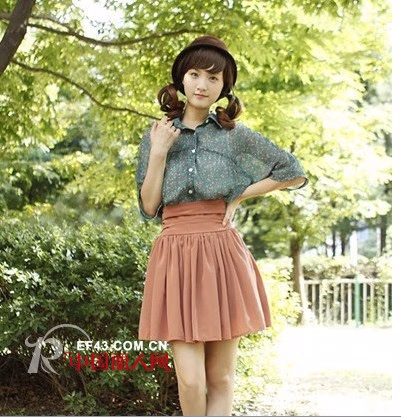 最最最甜美的流行单品非碎花系列莫属,这间墨绿色的碎花衬衫,蝙蝠袖的设计遮掩赘肉,下身搭配鲜色系橘色百褶裙,两种颜色搭配给人无限的新鲜感。