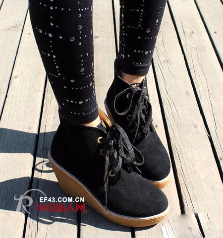 韩版时尚性感彩色磨砂牛皮交叉绑带坡跟高跟短靴,超夸张的系带装饰,厚底坡跟的运用,要诉说的是一种狂野的内心向往,深静时是一种对无古气息的怀念,穿这样一款靴,搭配铆钉打底裤,牛仔背心,现代都市的时尚MM是否已经回到了那原古?