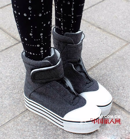 学院风呢料交叉绑带厚底休闲鞋单鞋,干净利落的款型设计,加上魔术贴的修饰,再普通的靴子也会变得如此的有气质,充分体现了女性除了甜美之外更有一份不羁的性格。