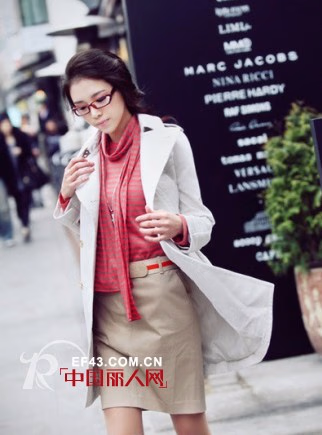 简洁大方款的双排扣风衣 作为OL一定不能缺少哦,敞开穿非常有风情,洒脱迷人。进入空调房,外套里面的搭配也同样不容忽视,粉红色系条纹衫为你增加可爱度。