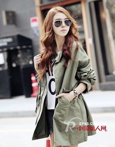 宽松工装风衣外套,清新而优雅的色彩,一样显露出小女人的浪漫,精致的收腰剪裁,让腰部的线条更加的纤细立体,挺括的面料,衣身两侧的小兜兜设计,显露出小女人的俏皮味道。