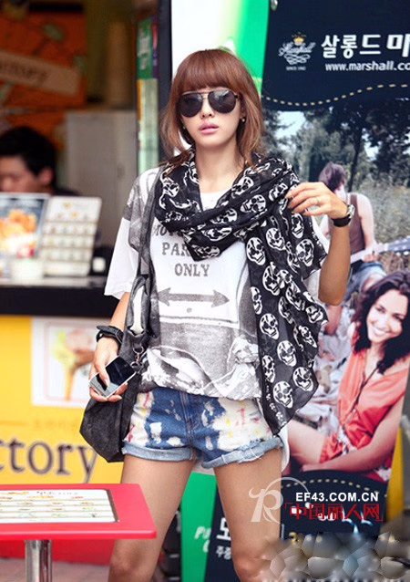 氧气MM不是不识人间烟火的人,但是即使她走摇滚风,你仍旧可以感觉到那股清新的气质。宽松字母T搭配牛仔热裤,混搭的包包和围巾具有很强的个性特色,加上吹弹可破的肌肤和阳光的笑容,氧气美女一定是街头的亮点。