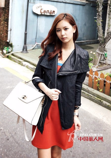 简洁的机车款夹克外套,初秋必备的混搭款外套,潮女的最爱,随意搭配在裙装或者T恤外面都很不错哦,上身很显气质的。