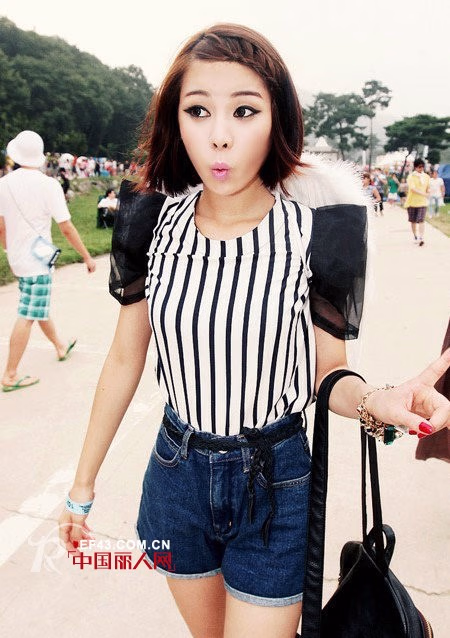 经典的拼色款泡泡袖衫,简洁又很时尚的混搭单品,搭配一条牛仔裤就很好看,上身超显气质的款式。