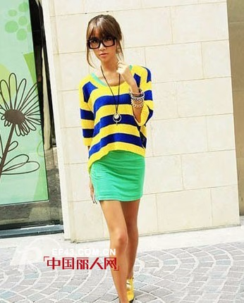 鲜艳的糖果色彩的条纹针织衫,非常宽松的线条,精致而短打造型,呈现出非常轻松而可爱的俏皮味道,细腻的面料,亲肤的感觉,穿着起来非常的舒适。