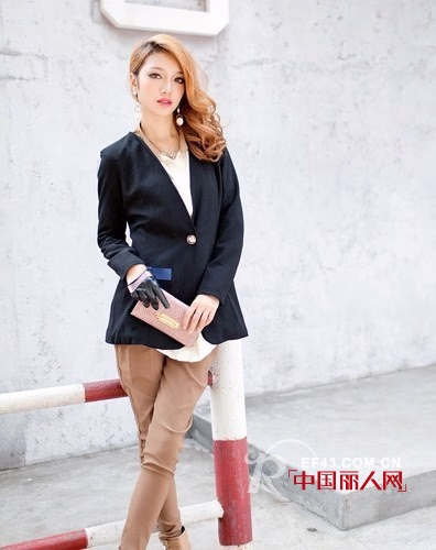 纯色剪裁艺术复古一粒扣西装,流畅的线条,贴合身型的剪裁,瞬间展露你最完美的身段,黑色的西服一直都是经典时尚的代表,内搭白色衬衫下穿时装裤,非常有OL干练的气质。