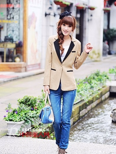 淡雅的卡其色调的西装外套,挺括的面料,让衣衣非常的有型,鲜明的色彩搭配,小巧的翻领设计,透露出十足的干练气息,圆润的衣摆,挺括的面料,显露出非常帅气的线条。