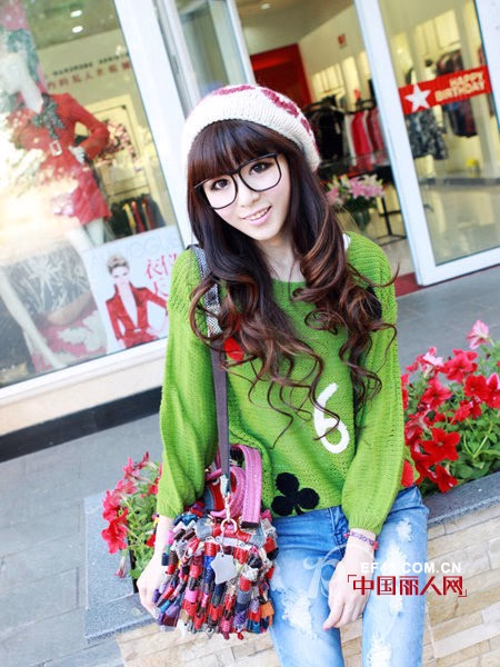 清新感十足的一款针织毛衣,很喜欢它的糖果颜色,特别娇嫩的感觉。衣身上的扑克牌图案设计也特别可爱,秋季单穿就很美。