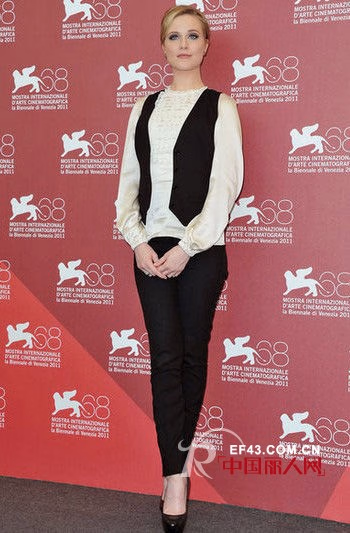 黑色的修身西装裤搭配丝绸面料衬衫山高贵典雅,小马甲的搭配修饰了整个身型。