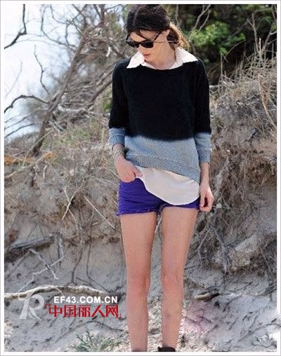 渐变的针织衫是时尚的方向针,搭上蓝色的热裤潮流不用说的。