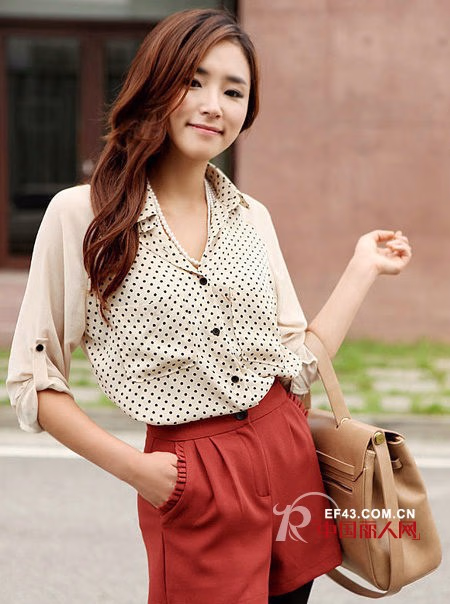 波点是今季比较流行的元素,运用到此款衬衫上,更显得甜美时尚,袖子设计的很特别,可以当做半袖穿,也可以长袖穿着,秋季里比较实用。