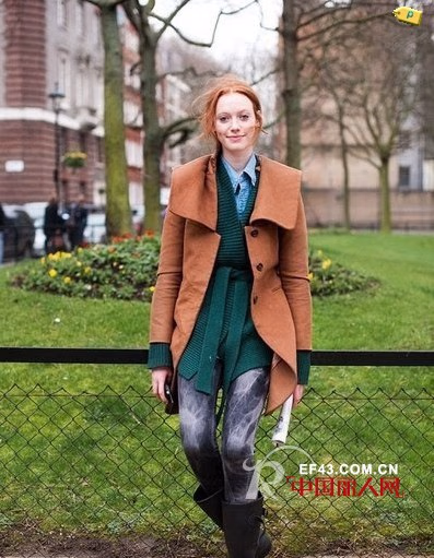 这款棕色呢子大衣,每到秋季都会露出它的踪影。大翻领,大扣子,设计精巧唯美,收腰的款式更是秀出好身材。内搭衬衫和针织毛衣,下穿紧身裤和长筒靴,都很时尚大气,非常显气质。