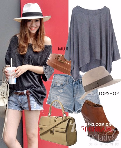 宽松针织衫+牛仔短裤