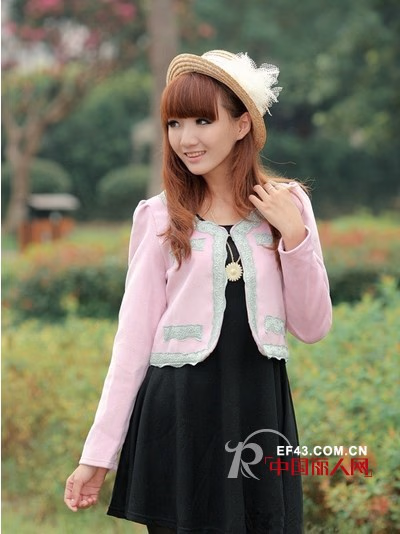很精巧的蕾丝边外套,而且难得的是,上身很挺呢,肩膀,袖子和腰身的处理都很有型,显高档的品味。内搭黑色连衣裙,下穿黑色的裤袜,甜美可爱中带点小性感。