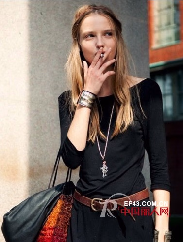 黑色连衣裙,松软的针织面料让穿着舒适,看似随意的包包,腰带,配饰让整体搭配并不压抑,穿出了新意。