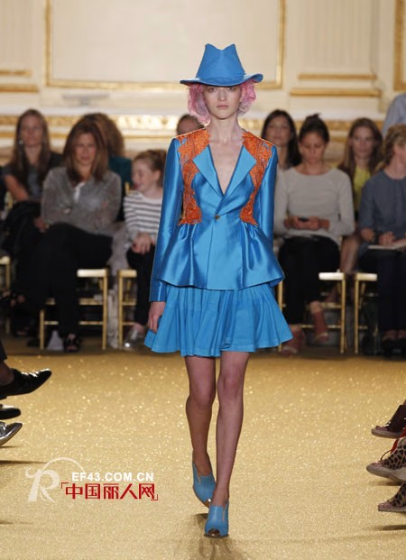 在配件方面,Thakoon打造了一个西部风格的裙靴,还有经典的西部牛仔帽,在这些设计中,粉色及蓝色起到了非常大的作用。即不会太复古同时也不显得很沉闷。