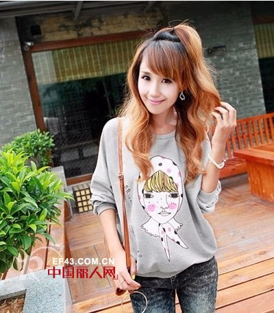 少女图案卫衣,休闲宽松的剪裁、独特个性的印花,非常的甜美大气,浅灰色更是卫衣经典的色彩,简约帅气,非常大气时尚。宽松的版型不挑身材,简单的搭配牛仔裤就很时尚。