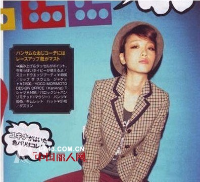 T恤搭配枣红色紧身裤十分时尚,同样是搭配英伦格子的外套,有型又复古,很有假小子的中性风喔!