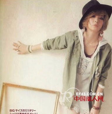 白色长款T恤搭配军绿色外套帅气且具有层次感,搭配骑士短靴更是为帅气加分喔!