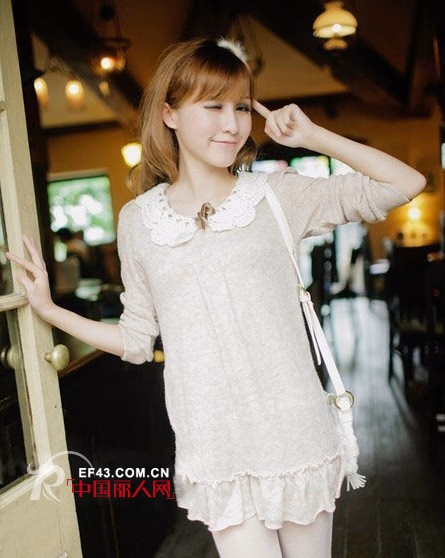 领子是白色的毛线针织,有飘带细节,很可爱的甜美感觉,适合可爱的MM唯一需要注意的是衣长稍短,一定要穿打底或者穿裤子哦。