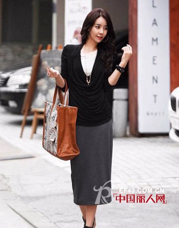 黑色的修身连衣裙,神秘的色彩,非常的显瘦,散发出迷人的性感气息,修身的线条,略带宽松的设计风格,穿着起来轻松而时尚。
