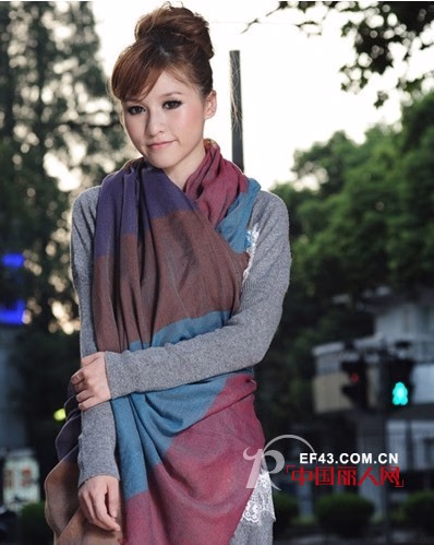 大规格渐变素色披肩,宽版的线条,细腻的面料,给人以非常温馨的感觉,鲜明靓丽的色彩搭配,给人以无限的优雅感,同时具有超凡的活力。