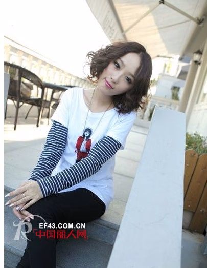 潮女条纹袖假两件套T恤,T恤是永不过时的款式,胸前简单的人物图,条纹袖子类似假两件套哦,棉质的很舒服。拼接的款式设计精巧,很有个性魅力。不管搭配何种服饰都能穿出时髦味。