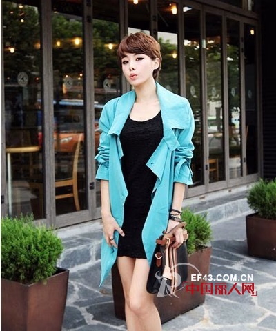 这款绿色风衣外套,长款设计,束腰版型,显高显瘦。尤其是大翻领与袖子搭扣的设计,都能够穿出精致的美感来。非常大气唯美。内搭黑色修身连衣裙,非常显瘦有气质。