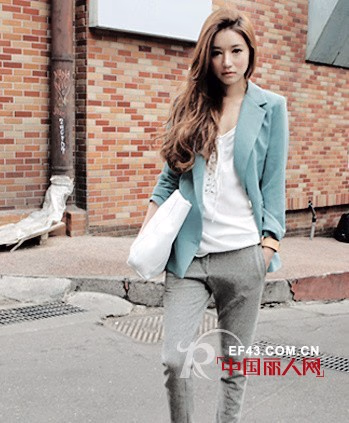 不是只有牛仔裤才能搭配帅气的西装,烟灰色小脚运动哈伦裤,白色为主角,系带内搭+大手包,干净利落,豆沙色西装抢先整体光亮,舒适的搭配,气场啊气场!