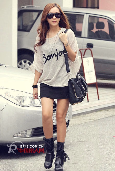 蝙蝠式针织衫,简约大方的造型清爽时髦。字母印图更添时尚感觉。具有遮肉效果的宽松板型,胖瘦MM都可以穿搭出百分百时髦范儿。搭配修身短裙,露出修长双腿的造型就是本季最潮选择。