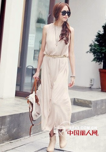 连体裸色大长裙,气质逼人!同色短靴,帅气加分,布配皮手袋,给整体的色彩缓冲,气场女王有木有!