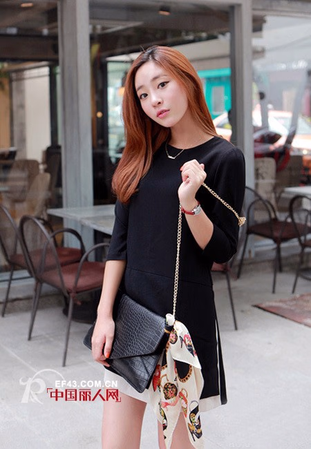 黑色的修身设计风格的连衣裙,时尚的色彩,给人以非常神秘的感觉,上身采用了松垮的设计风格,可以掩盖住腰部的小肉肉,下身采用了包裹设计风格的裙摆,非常的性感。