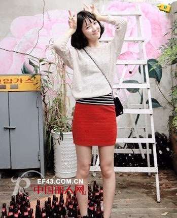 刚才那个回到过去了,现在这身搭配会时尚感多一些,条纹背心打底,搭配了红色包臀短裙,套上象牙白色针织,有了层次感外,也不会让条纹太扎眼抢了裙子的风头,黑色短靴和斜跨的小包呼应。