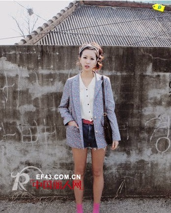 这一身就比较低调的奢华了,白色排扣衬衫+黑色做旧短裤,红色的腰带很有心思的加入其中,雪花款中长西装搭入,包包和鞋子无疑的呼应,袜子是重点,荧光粉色大赞,和腰带小冲撞。