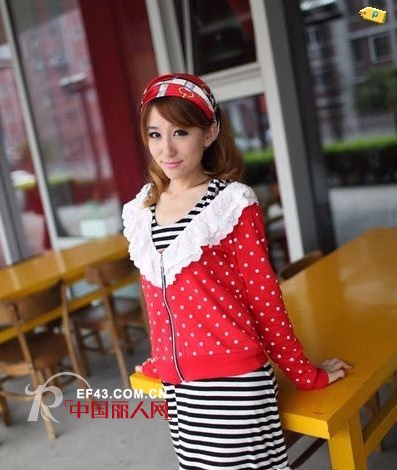 荷叶领波点外套上衣,波点、蕾丝、荷叶边娃娃领、短款、糖果色无不彰显着甜美可爱的气质,甜美可人的小外套,喜庆活泼,充满活力的红色,大大的蕾丝荷叶边,让人看了爱不释手。