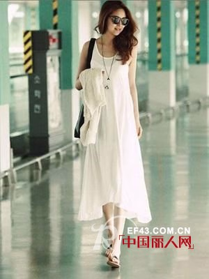 裙子的颜色款式+垂感让你像一只白天鹅一样干净高贵!搭配一双简单的人字拖既简单又舒适,如果天气微冷还可以外搭一件针织小马甲。