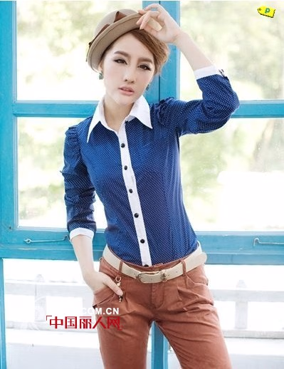 翻领小波点衬衫,大翻领的刻意设计,简洁、线条立体感强,知性中透着份干练,泡泡袖耸肩很到位,转移注意,延长了衬衫的视线,改变上身比例,让人顿觉气质提升,非常出彩收紧的腰线帮你藏起多余的赘肉,气质上非常的知性,而且也非常实用。简单的搭配长裤,就很有知性魅力。