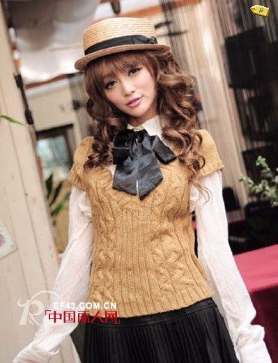 淡雅的卡其色彩的针织马甲,精美而立体的麻花图案,显露出非常精致而细腻的小女人气息,细腻的面料,亲肤的感觉,穿着起来非常的舒适,短造型的设计,更加的干练。
