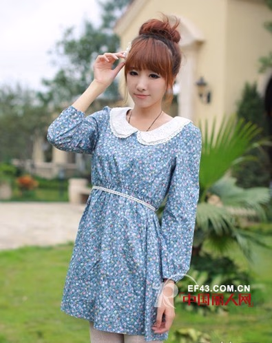 娃娃领碎花长袖连衣裙,日系风格,非常的有田园森林系的感觉。清新的小碎花甜美可爱,收腰的设计更是凸显细长的身材,搭配白色的丝袜,日系服饰非常青睐的搭配风格。
