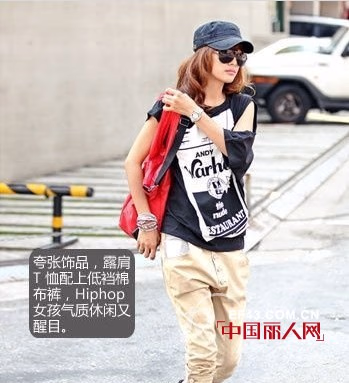 这款涂鸦的蝙蝠衫新颖的款式以及细节上的打点成为了人们视觉的焦点。黑白鲜明的色泽,时尚的露肩设计塑造了都市女性的新形象,突出性感的身材,配搭修身七分裤可以起到收缩腿部的效果,使下身更显苗条。