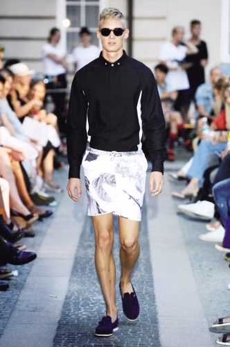 男装品牌Soulland的发布作品,被认为是时装周中最成熟的系列之一。作为由塞拉斯·阿德勒(Silas Adler)在2002年推出专做T恤的品牌,它的发展可谓突飞猛进。此次该品牌推出的2012春夏系列,以斜纹棉布的机车夹克和经典预科生的按扣式衬衫,对应俏皮的泡泡纱百慕达短裤、印花衬衫和短裤的组合。